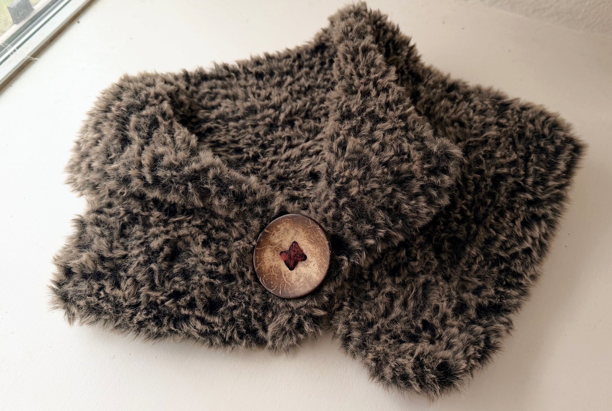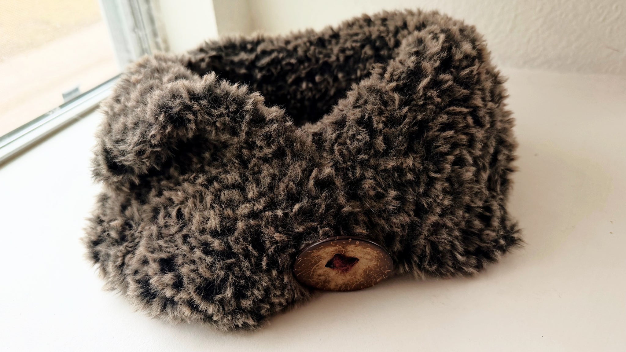 The new Bleeker wrap will keep your neck wonderfully warm. It's knitted with our new Faux fur yarn which is luxuriously thick and just so incredibly soft. No pain here, just warm feels. This cute neck wrap is knitted flat in relaxing garter stitch and gets decreased towards the neckline. Oh and one of our cool large shawl pins is included~