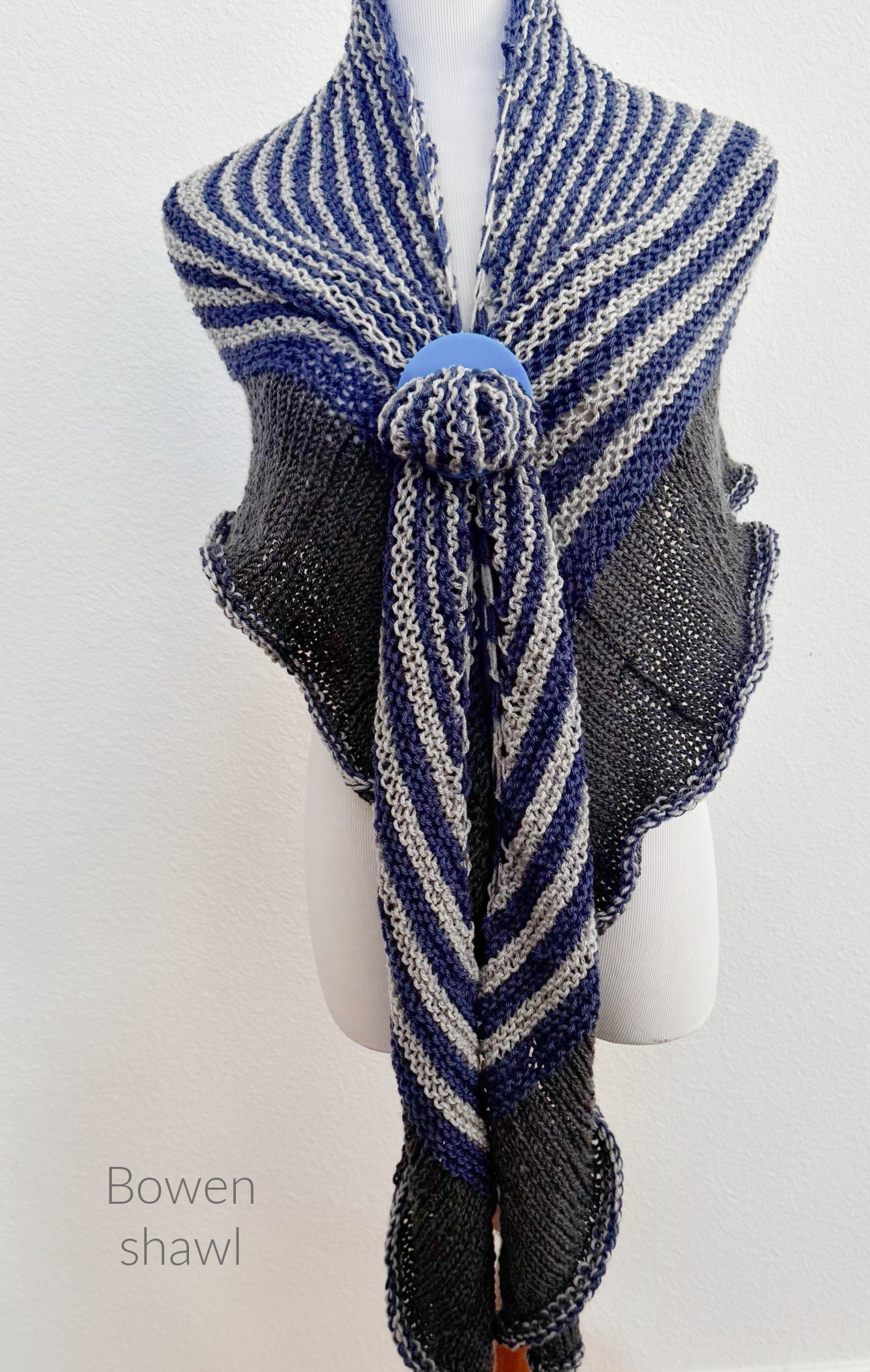 The new Bowen shawl will definitely become one of your favorite shawls to wear. It's an easy knit, it's colorful, it's also big and the yarn makes it incredibly soft and comfortable to wear.