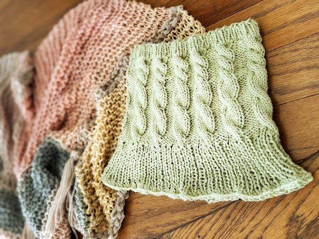 Bamboo+ yarn, 2 skeins used in a DK weight yarn, 272 yards/100 grams each. 60% bamboo/40% cotton.