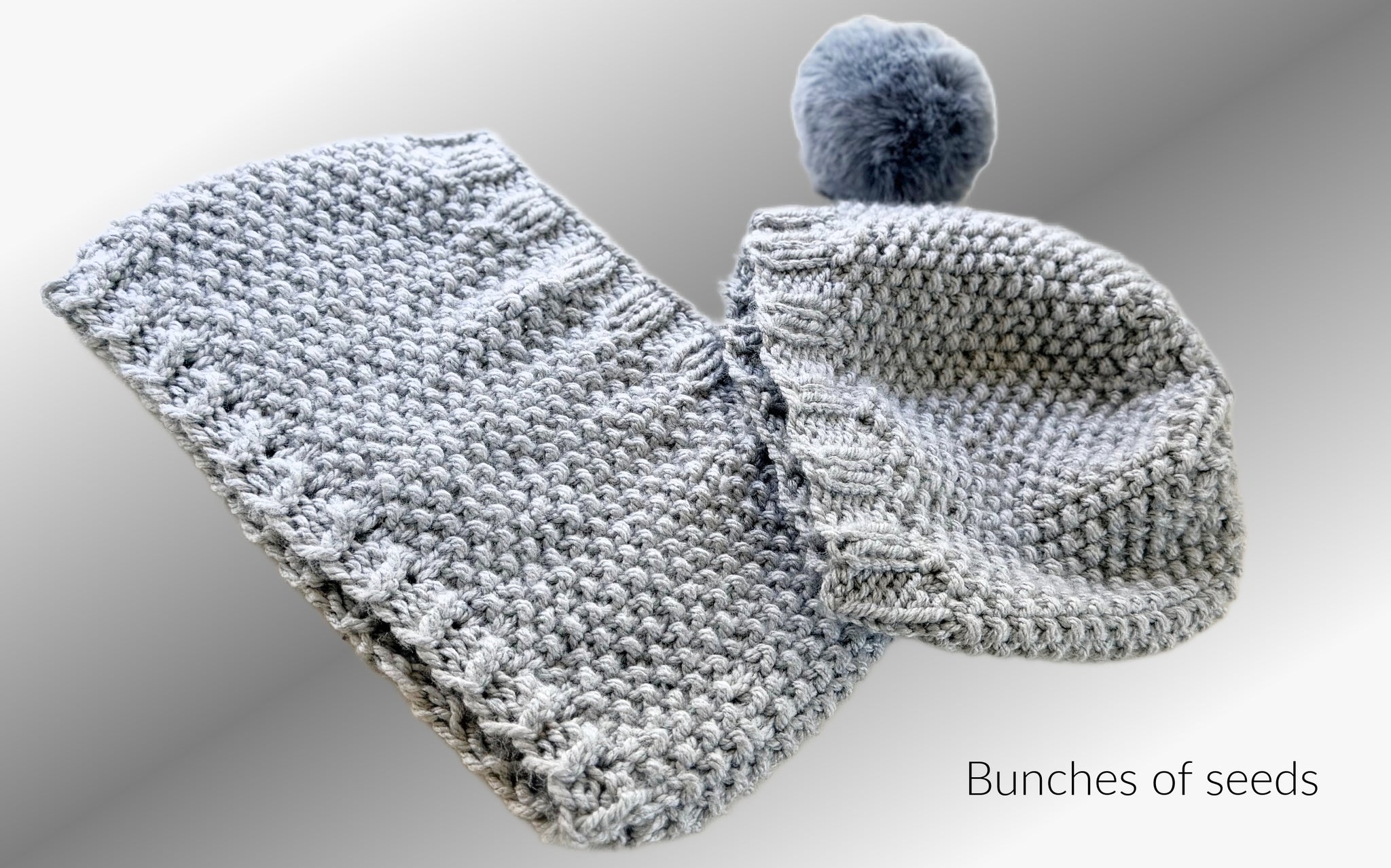 Keeping warm, looking & feeling really good in the "Bunches of seeds" cowl and yes, there is even a matching hat, which now comes with a matching Pom~ Through February 15th save another 15% automatically!