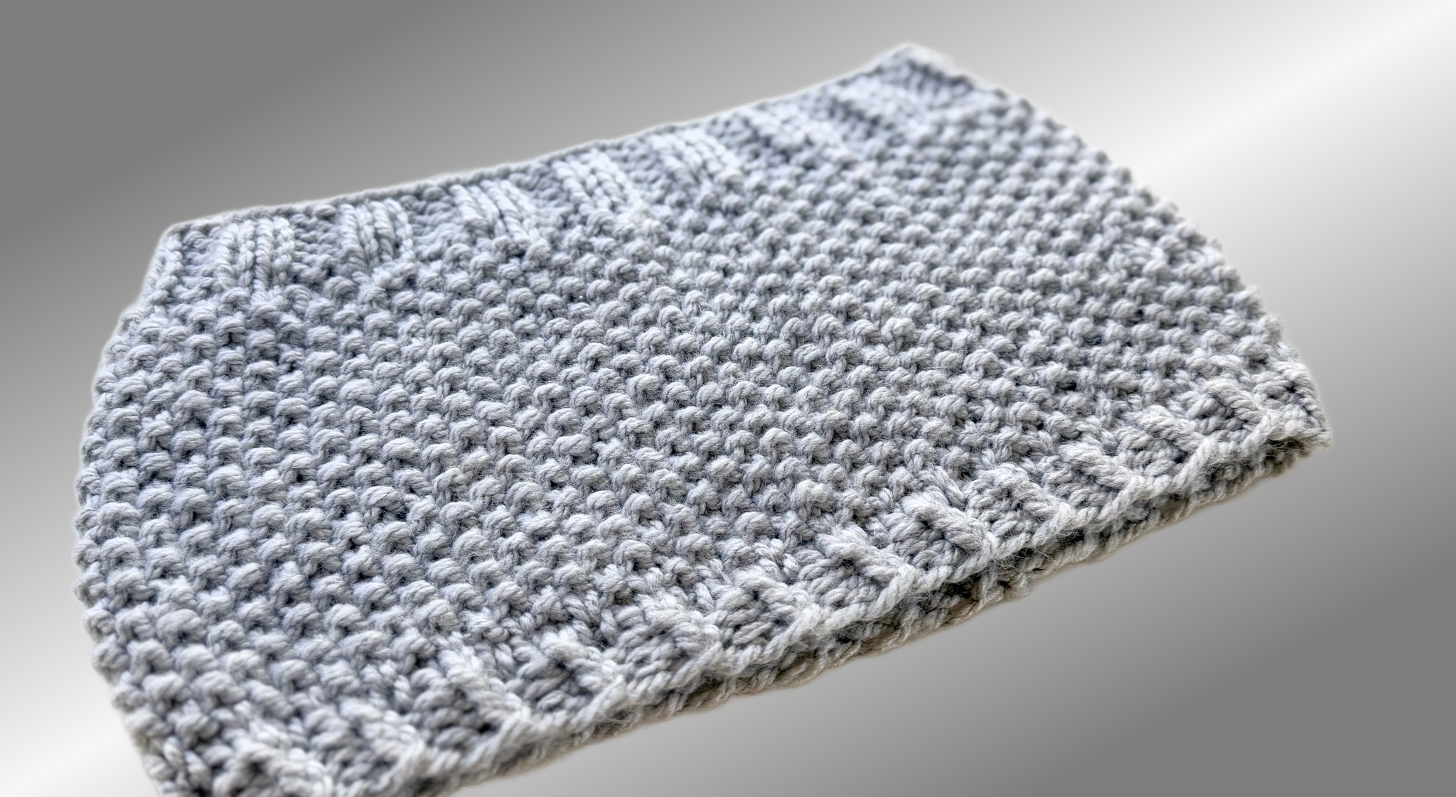 - Cowl 12 sts and 22 rows in seed stitch pattern.