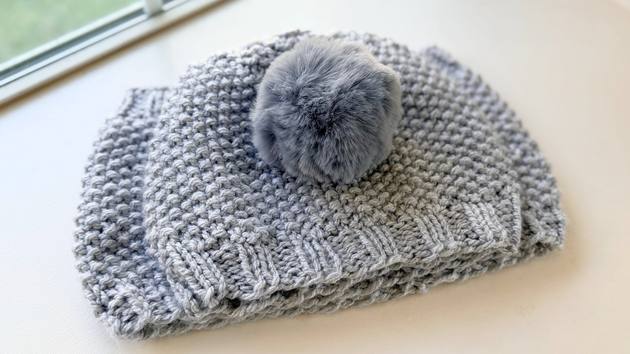 - Hat 11 sts and 24 rows in 4" of seed stitch pattern.