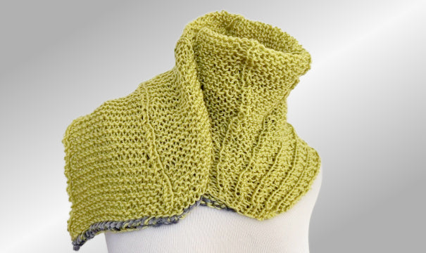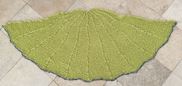 Techniques applied: Knitting and purling, increasing, binding off with two yarns held together, weaving in ends. Blocking is optional, the sample shown has not been blocked.