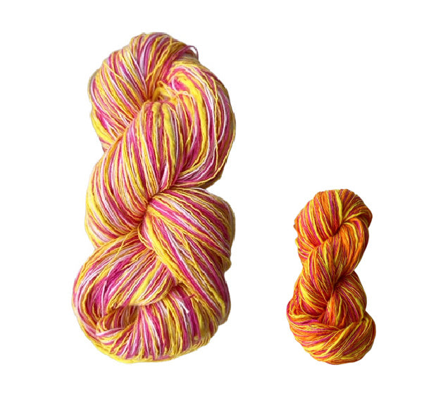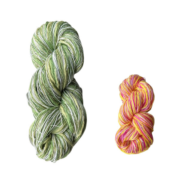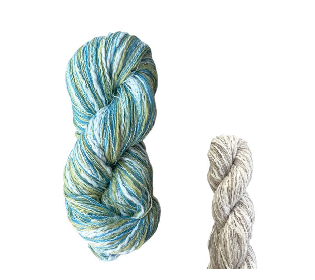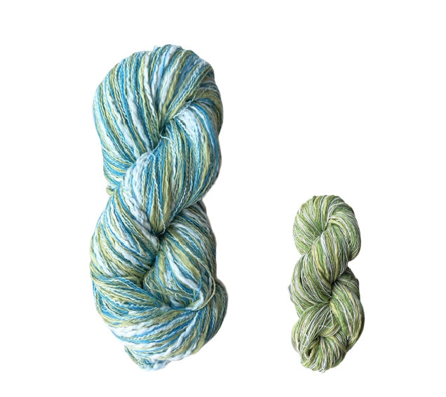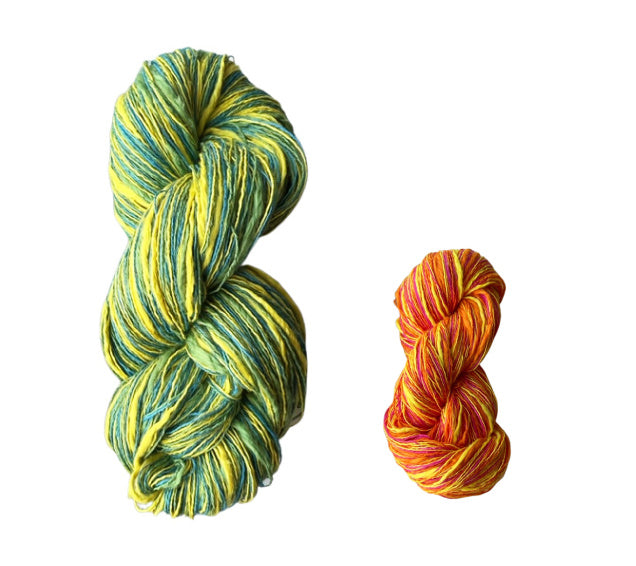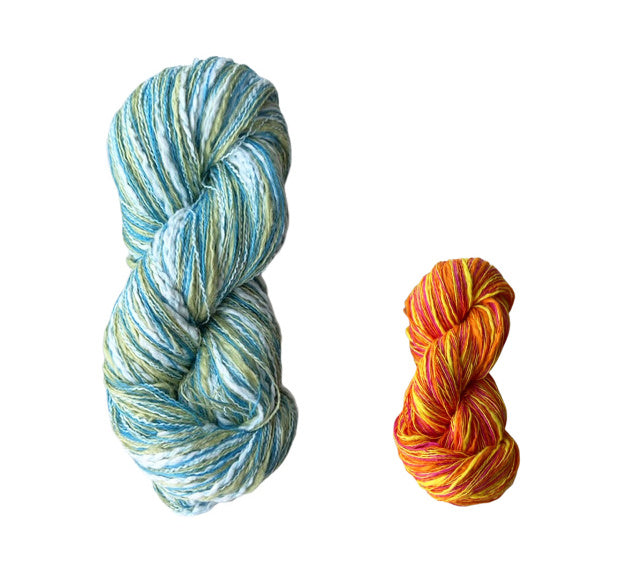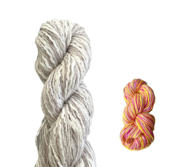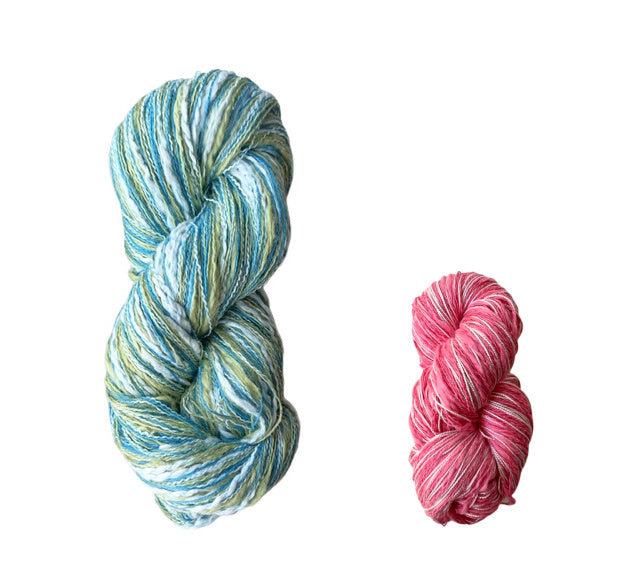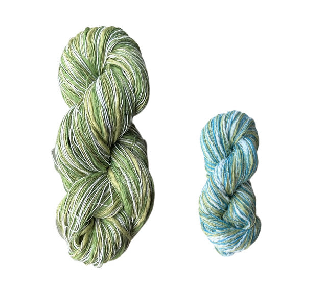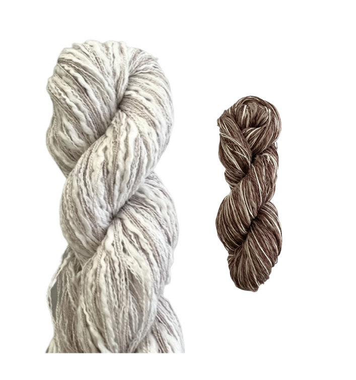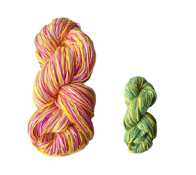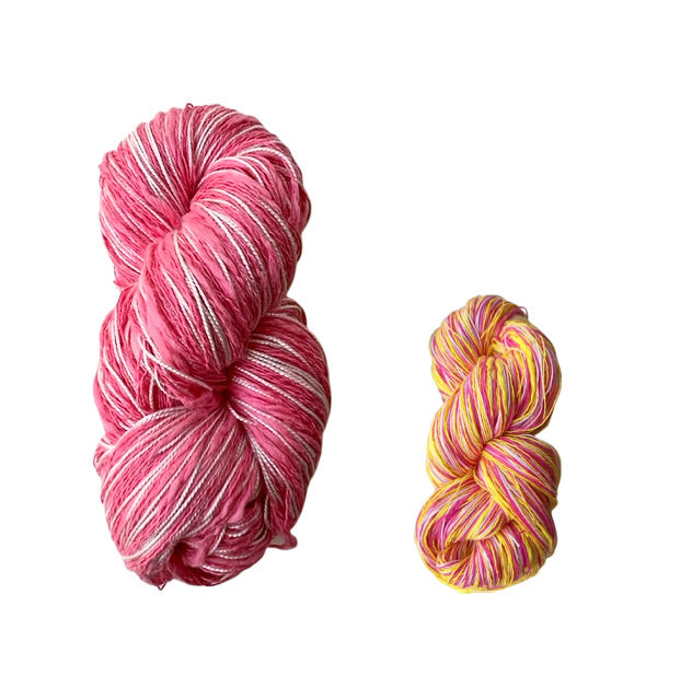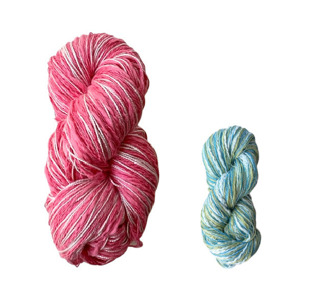 - One full Pebbles skein. Each skein is hand wound, holds 160 yards (about 57 grams), consisting of 3 strands of yarns with two thick and thin cottons, adding the pebble textures and a straight smooth mercerized cotton providing stability and together they create a DK weight yarn.
