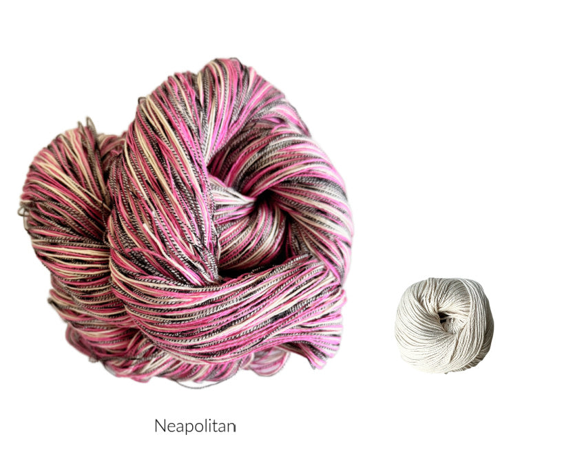 - A mini skein with 20 yards of our Organic cotton yarn in a DK weight to create the edges.