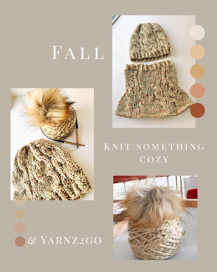 Techniques applied: Knitting and purling in the round, cable knitting (see abbreviations on page 1 for help), increasing, stretchy bind off for the cowl (instructions given), the hat gets decreased and remaining stitches get cinched together with tapestry needle.
